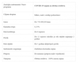Uzimajući u obzir da ovakva situacija nije izazvana njihovom krivnjom, Vlada RH nastoji pomoći premostiti ovo vrijeme osiguravajući dodatna sredstva za likvidnost zajmovima od HAMAG-a (Hrvatska agencija za malo gospodarstvo, inovacije i investicije). U tu svrhu je otvorena posebna linija kreditiranja pod nazivom „Zajmovi Covid-19“.