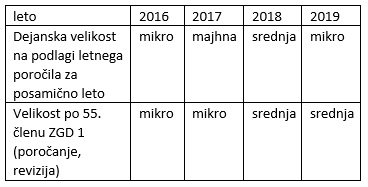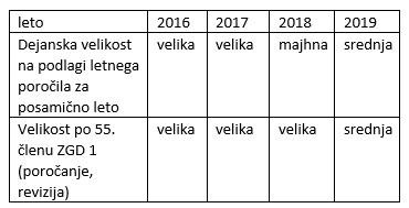 Priporočamo, da preverite vašo velikost (ocenite stanje na 31.12.2019) že danes, da boste, če je potrebno, pravočasno naročili revizijo letnih računovodskih izkazov. Spomnimo, zakonsko je obvezno revidirati izkaze velikih in srednjih kapitalskih družb ter dvojnih družb, prav tako pa tudi konsolidirane računovodske izkaze.