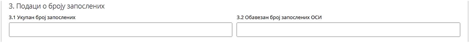 3.2 Obavezan broj zaposlenih OSI – obavezan broj zaposlenih osoba sa invaliditetom koje je poslodavac dužan da zaposli u odnosu na ukupan broj zaposlenih sa stanjem na kalendarski poslednji dan u mesecu za koji se podnosi izveštaj.