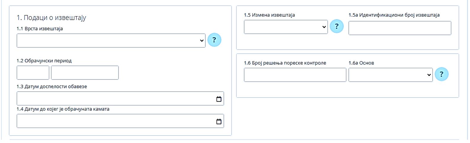 1.1 Vrsta izveštaja ( blagovremen, neblagovremen, izveštaj po nalogu kontrole);