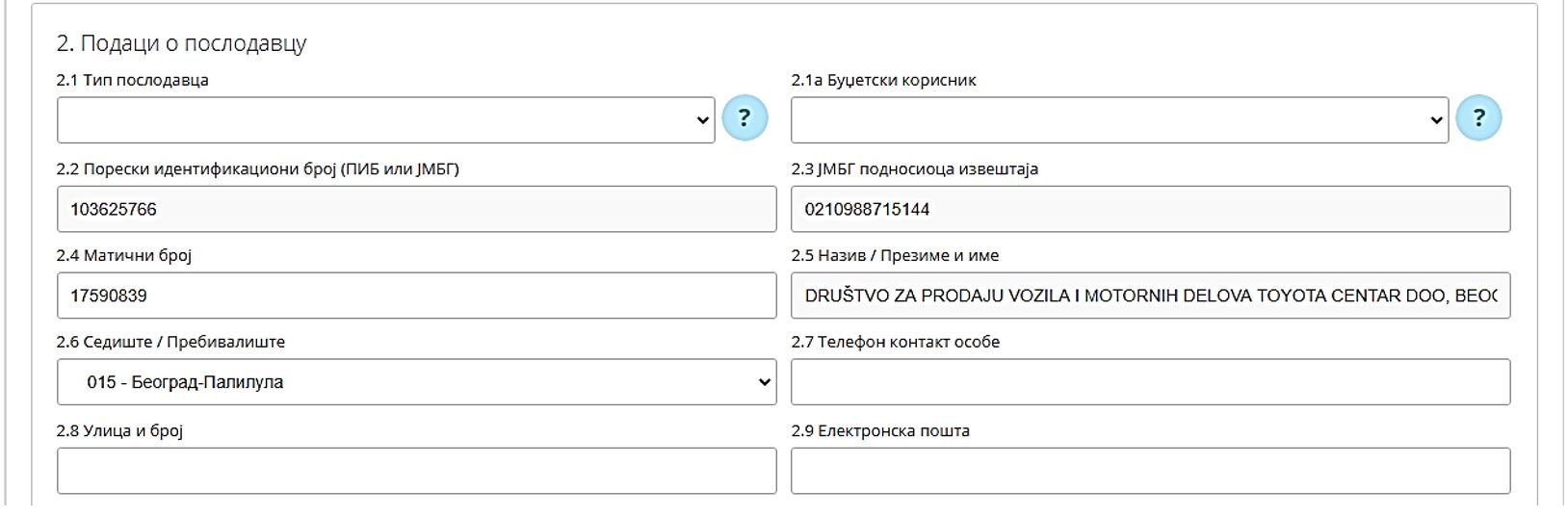 2.1 Tip poslodavca (pravno/fizičko lice, poljoprivredno gazdinstvo, vojno lice, preduzetnik, ogranak stranog pravnog lica )
