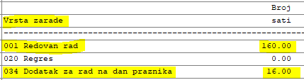 To ukupno čini 210% od osnovne zarade. Ukoliko je zaposleni radio pun fond radnih sati za određeni mesec u kom se nalazi i državni praznik, na njegovoj platnoj listi za redovan rad biće iskazan pun fond radnih sati, dok će dodatak za rad na dan praznika biti prikazan kao posebna stavka. U nastavku je primer za februar 2026. mesec koji je imao ukupno 160h radnih sati.